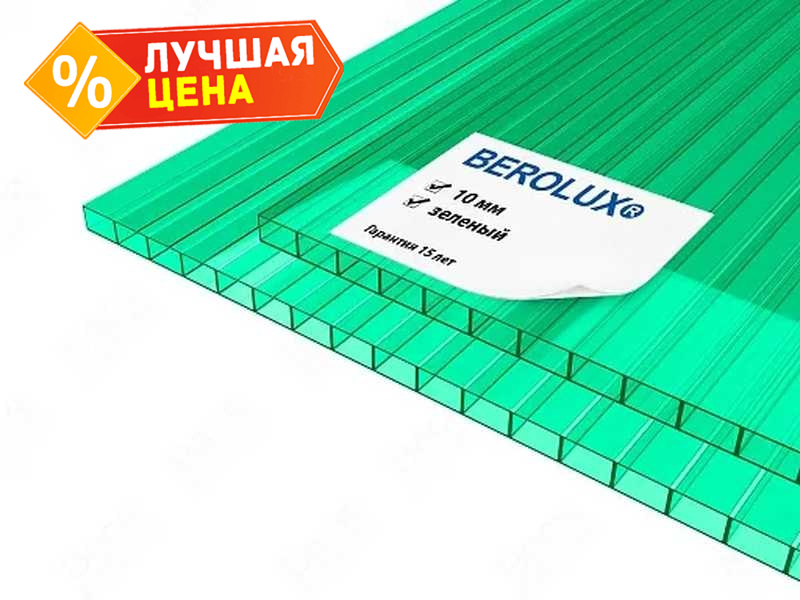 Сотовый поликарбонат 10 мм BEROLUX зелёный 2100х6000 мм
