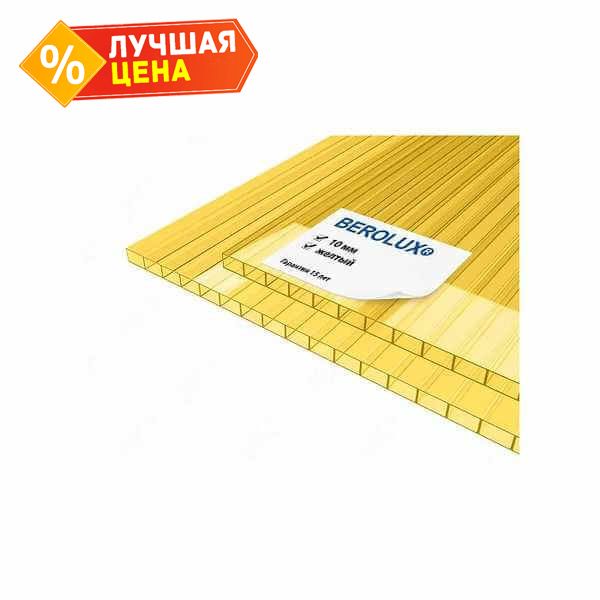 Сотовый поликарбонат 10 мм BEROLUX желтый 2100х6000 мм