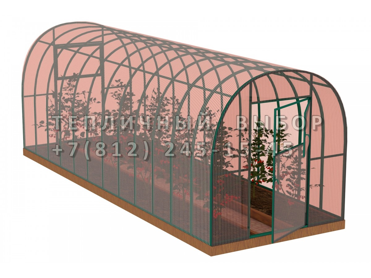 Теплица из поликарбоната-фито Усиленная Арочная 2,1х8 h=2 м профиль 25х25 мм Зеленый