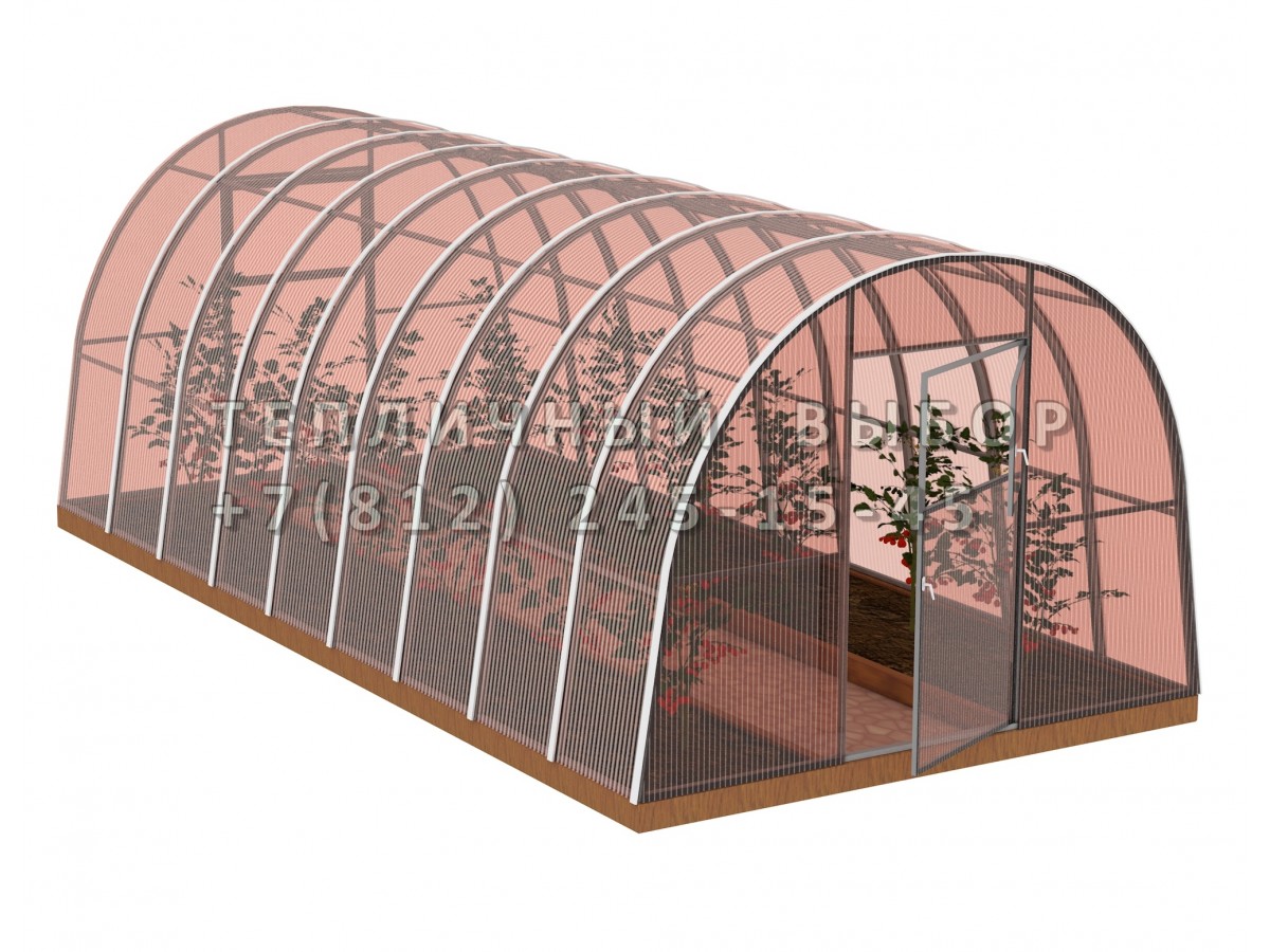 Теплица из поликарбоната-фито Усиленная Арочная 2,5х6 h=2 м профиль 25х25 мм