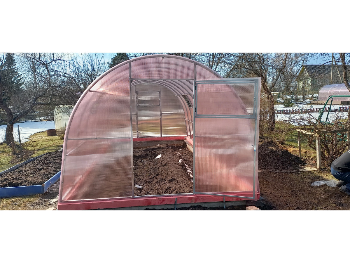 • практичная конструкция: 2 двери и 2 форточки обеспечивают легкий доступ в теплицу и ее проветривание. Размер дверей 171х89 cм, размер форточек в дверях 48х83 см