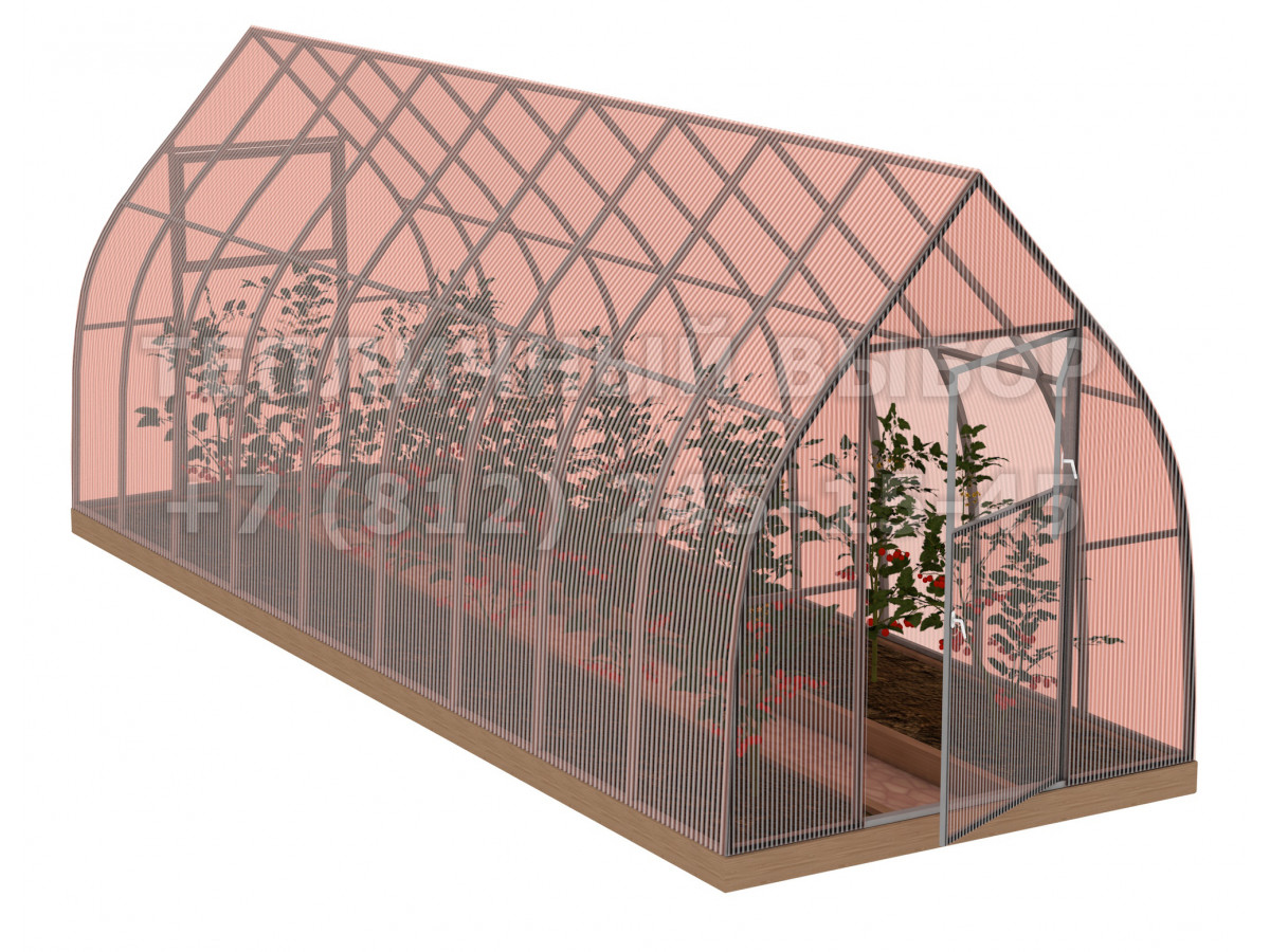 Теплица из поликарбоната-фито Усиленная Капелька 2,1х6 h=2.3 м профиль 25х25 мм