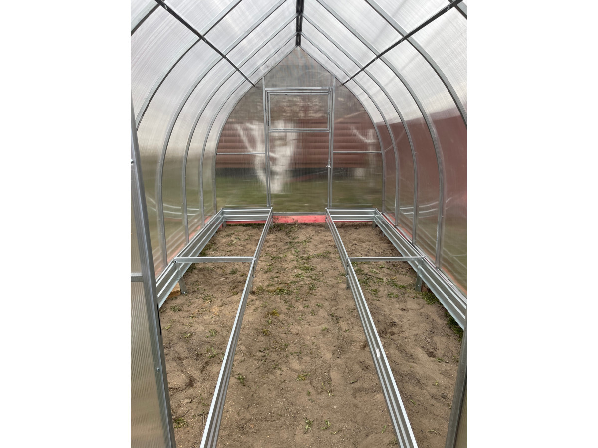 Теплица из поликарбоната Усиленная Капелька 2,5х8 h=2.3 м профиль 25х25 мм