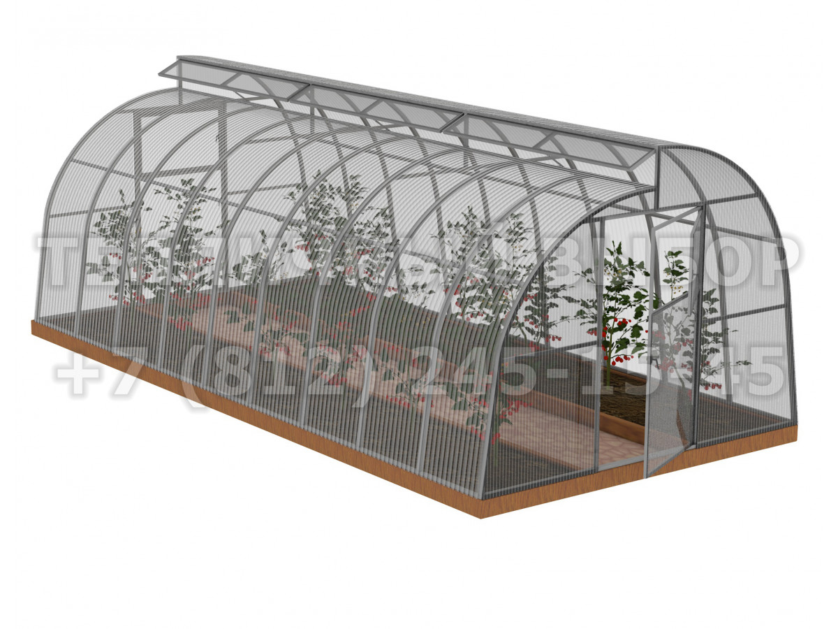 • Каркас теплицы состоит из цельносварных торцов, цельных дуг, стяжек и оснований.
