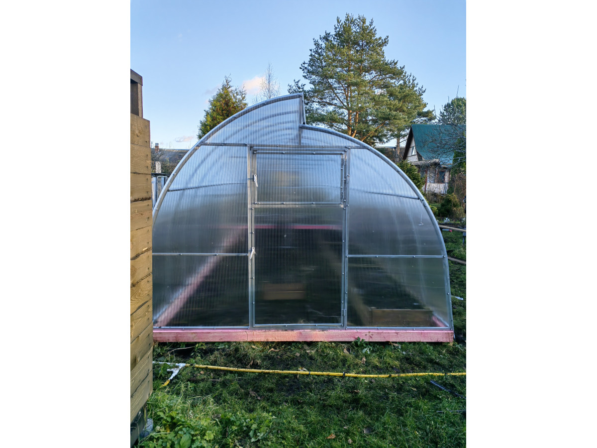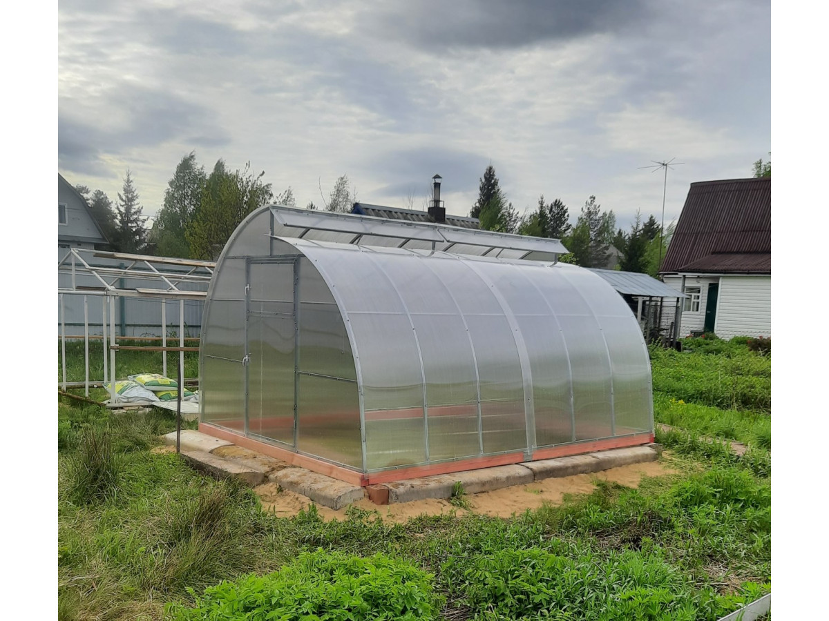 • арочная форма теплицы способствует скатыванию снега в зимний период и равномерному распределению солнечного света, в теплице отсутствуют неосвещенные участки;