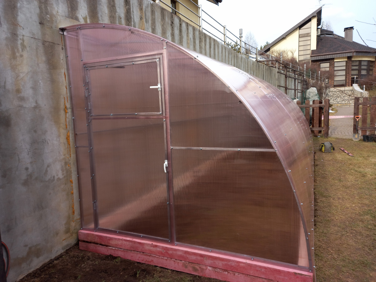 Теплица из поликарбоната Усиленная Пристенная 2,3х6 h=2.1 м профиль 25х25 мм