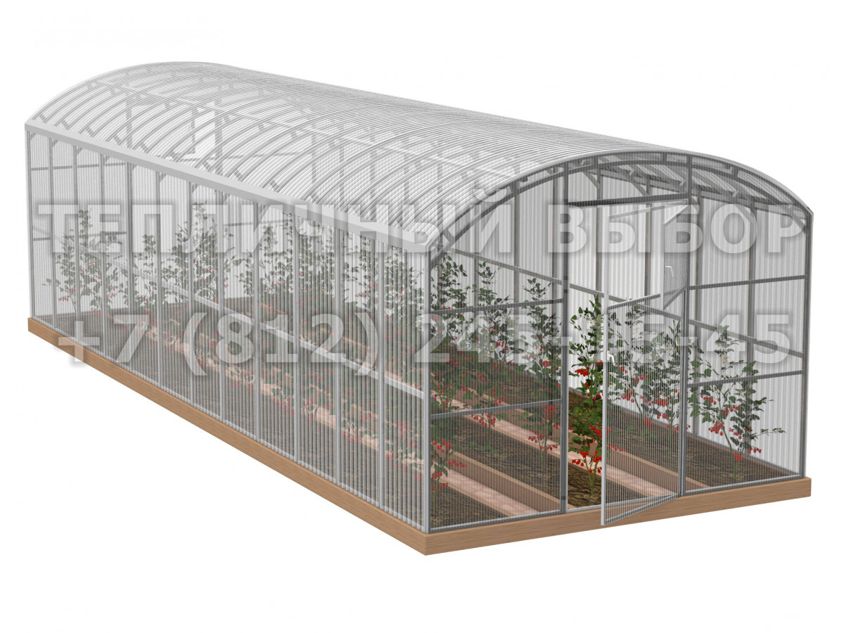 Теплица из поликарбоната Усиленная Прямостенная 2,5х12 h=2.1 м профиль 20х40 мм